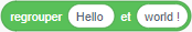 |  | L'opérateur + met bout à bout les deux chaines de caractères Hello et world ! |