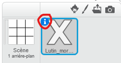 Il faut ensuite cliquer sur le petit i en haut à gauche du lutin :