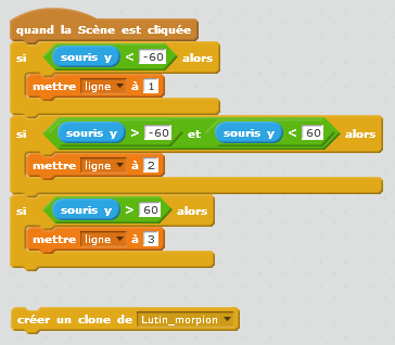 Finalement, on rattache l'élément créer un clone de Lutin_morpion et on obtient le script ci-dessous :