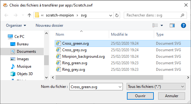 Il faut sélectionner le fichier Cross_green.svg puis cliquer sur le bouton Ouvrir :